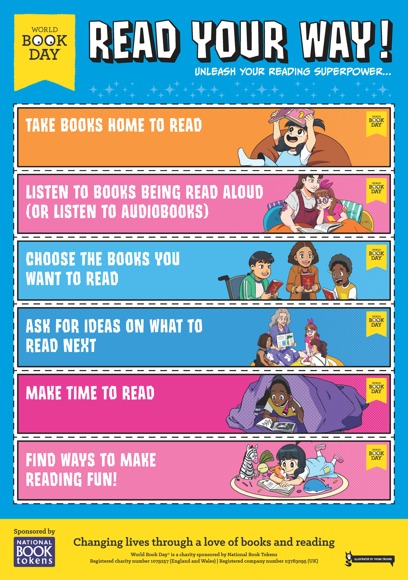 World Book Day’s mission is to promote reading for pleasure, offering every child and young person the opportunity to have a book of their own. Their six principles of reading for pleasure are: