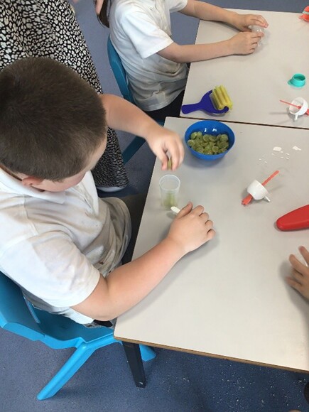 This week Lilac class made their own ice lollies using different fruits and juice to try and keep cool in the warm weather. Each child picked out their own fruits to add into their ice lolly mould and each poured their own juice into the mould. The children loved this and are excited to give them a try on a hot day next week!