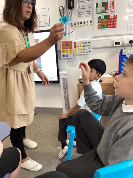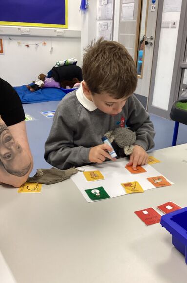This have term children are listening to the sensory story: ‘Meet the Weather’, interlinking to our Topic theme. Children have been exploring props and requesting them using their communication boards. Children have composed some sentences using colourful semantic and then they were able to answer who, what doing and what question? We will reinforcing the questions each week to increase their comprehension about the sensory story.