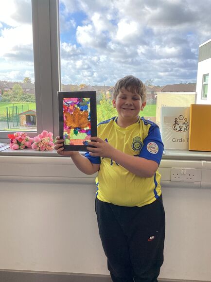 This week in Forest School, Lion Class made some lovely sun catchers. We collected some autumn leaves in Forest School, then used colourful tissue paper and added them to a frame. They look fantastic on display on our classroom window!