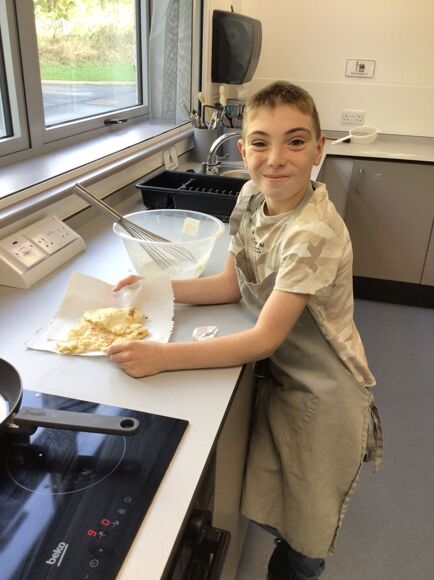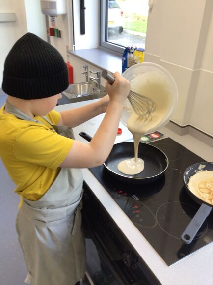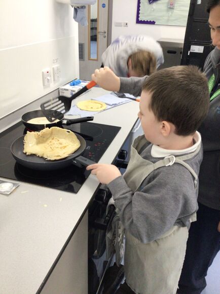 In Cookery, Leopard Class were developing the skills of pouring, mixing and measuring ingredients. They combined everything in a bowl before carefully pouring the pancake mix into a frying pan. Each child then turned their pancake to ensure it was cooked on both sides. Finally they got to enjoy tasting their pancake with a topping of their choice.