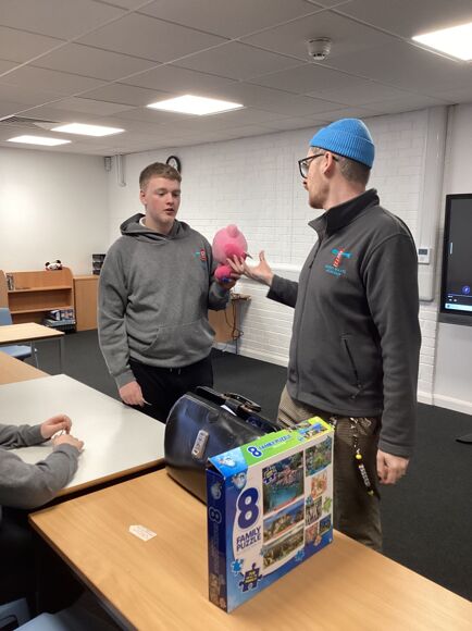 On Tuesday we started a new Humanities topic all about World War 2. We started the lesson in a different classroom and listened to a radio announcement informing us we were now at war. We heard air raid sirens and explosions. We were then given our own identity cards ready for us to be evacuated. Students then packed up a case using items that had been scattered around the room. The students were given a list of items to check off.