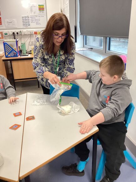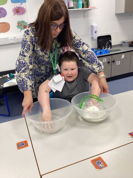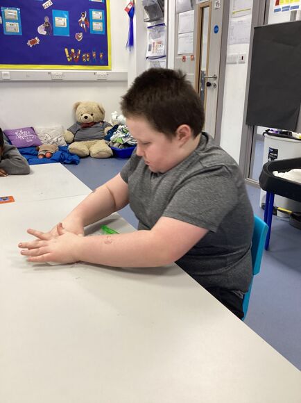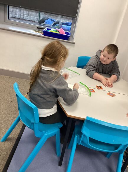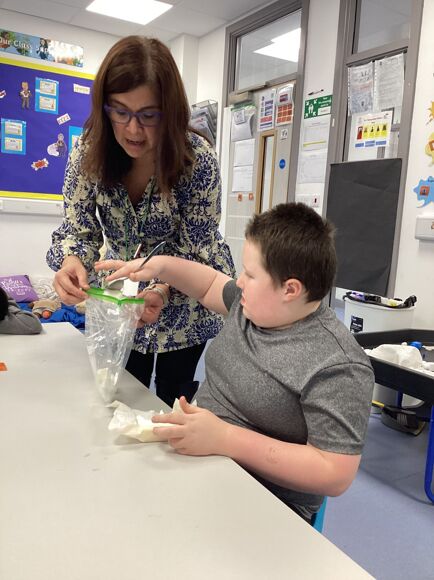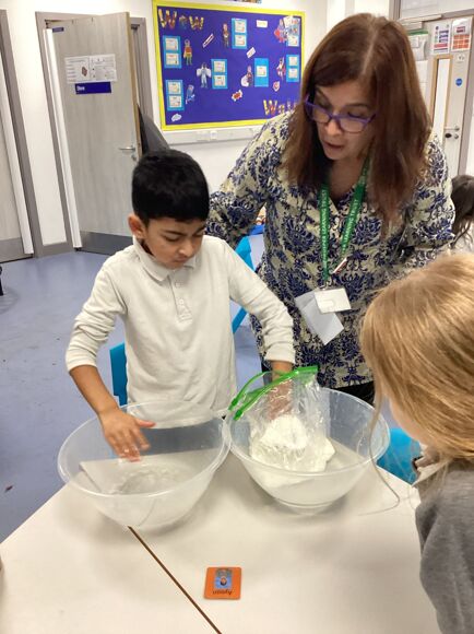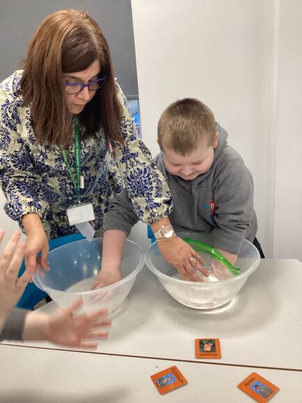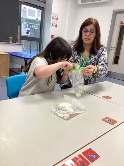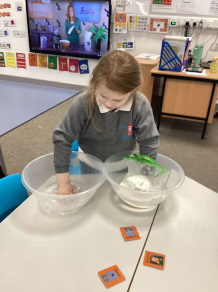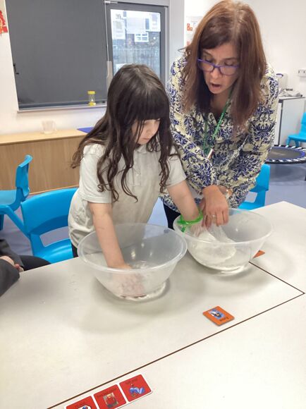 Children used lard, zippy bags, bowls, ice and water. They loved to feel the difference between both hands.