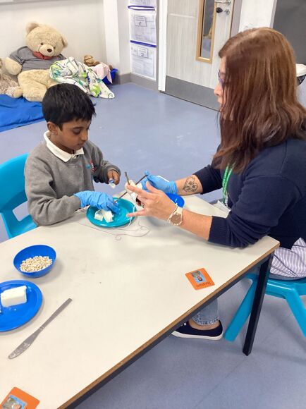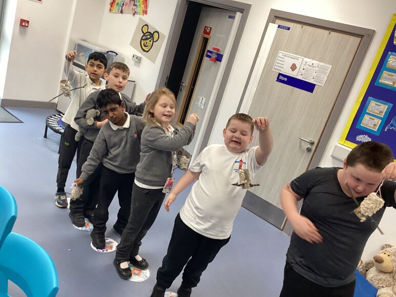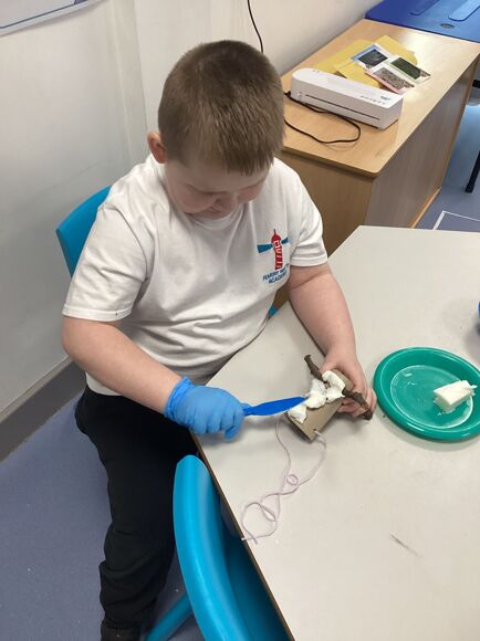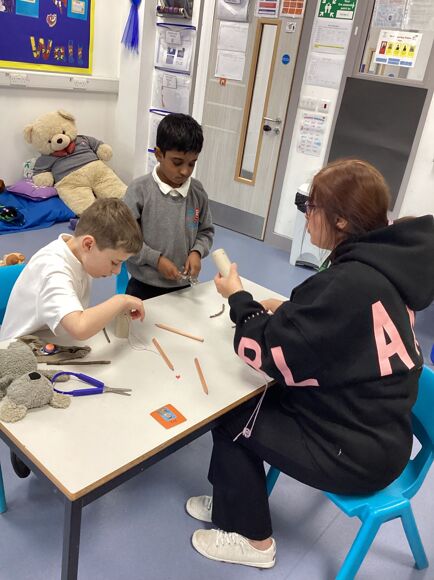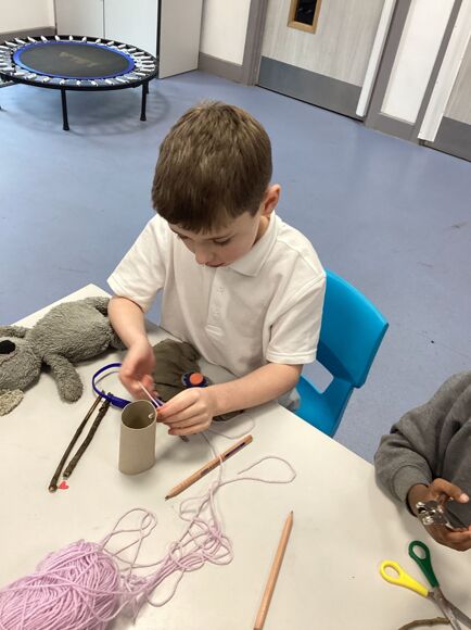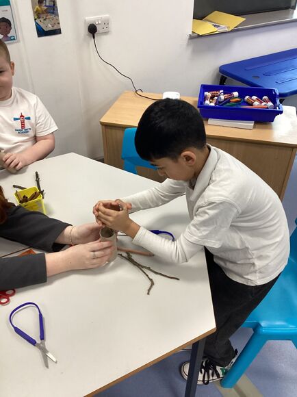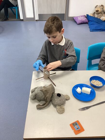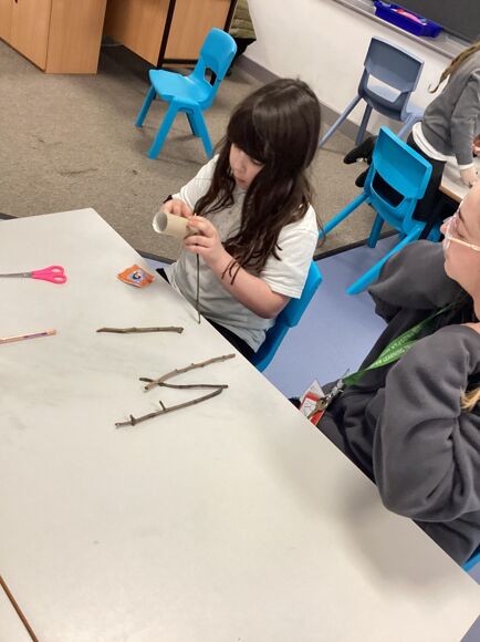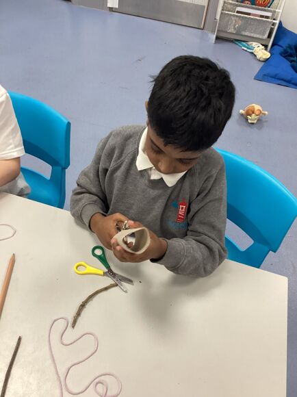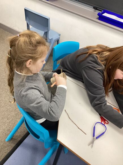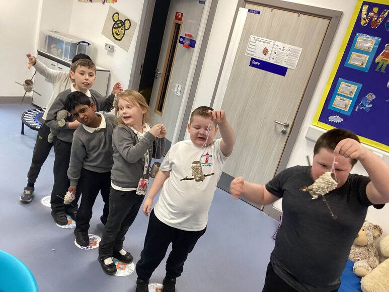 This week Blue Class have been making bird feeders throughout the week. We had to split the process over two days to complete the experiment. During the first step we collected some sticks from the Forest School area we then used the hole punch to make six holes in our toilet roll tube. Children inserted the sticks and a string. The second step consisted spreading the lard and sticking the bird seeds.