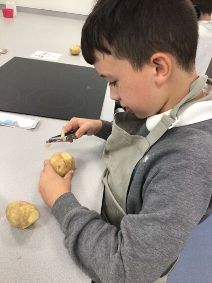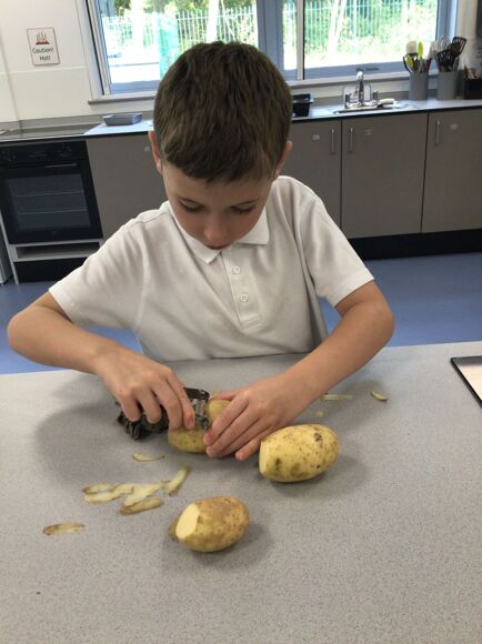 In Cookery, Leopard Class have been developing their food preparation techniques. Last week's focus was on peeling, where the pupils learnt how to safely use a peeler and what they might use a peeler for.