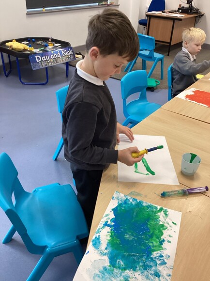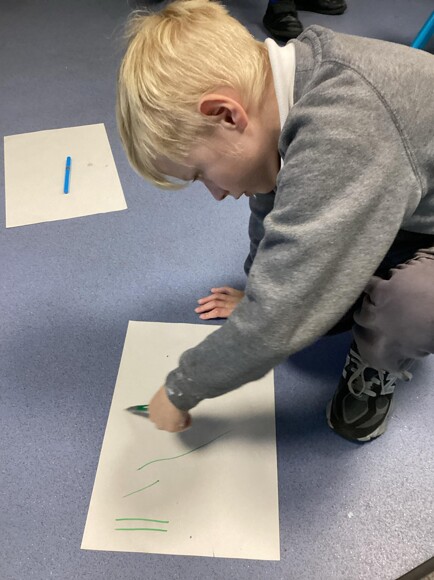 Blue Class got stuck into a wonderfully messy and creative Squiggle While You Wiggle session, and this time, they used paint to bring their movements to life.