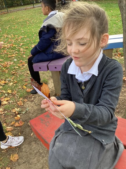 This week in Forest School, Pink Class enjoyed singing to 'Autumn Leaves are Falling Down'. They then collected different coloured leaves and matched the colours to stick on their card.