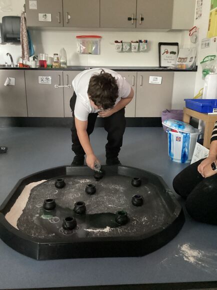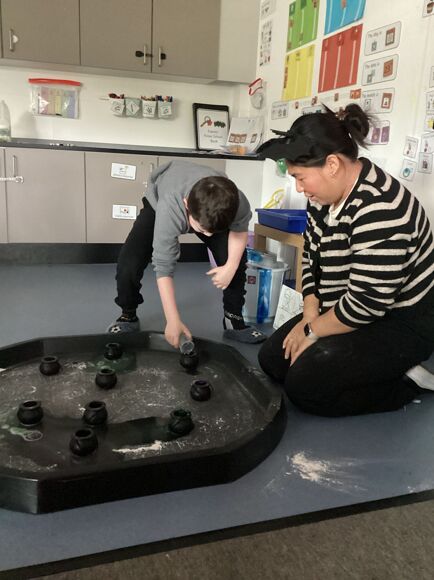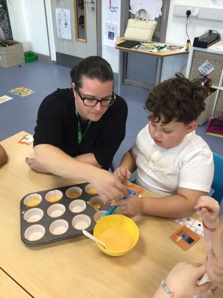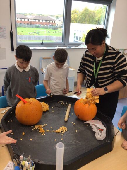 Everyone loved spooky bucket time. They got to add the mystery liquid to the witches' cauldrons, which made them fizz and bubble. Everyone then went off to create their pumpkin lanterns and they looked fabulous.
