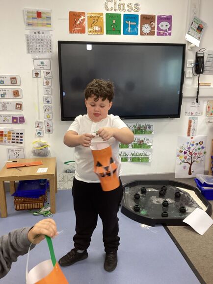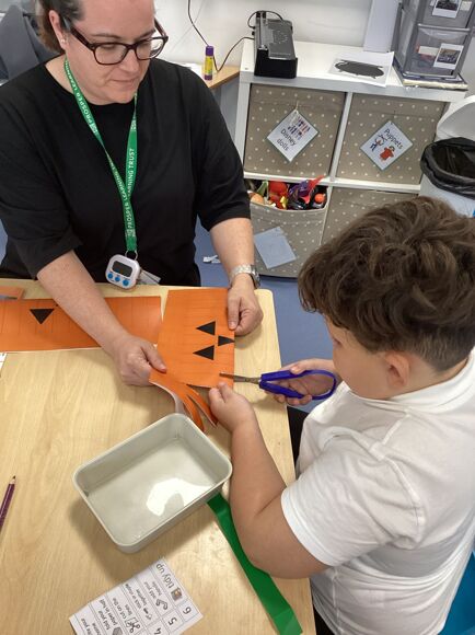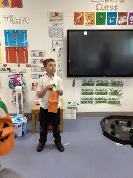 Leopard Class enjoyed participating in a range of spooky activities. Last week, the pupils read a story called 'Skeleton for Dinner'. They created predictions by looking at the front cover and the blurb before creating a bubbly witches' cauldron craft.