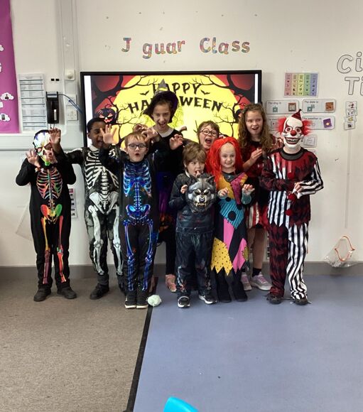 Jaguar Class enjoyed some Halloween-themed activities last week, including making pumpkin pictures and Halloween headbands.