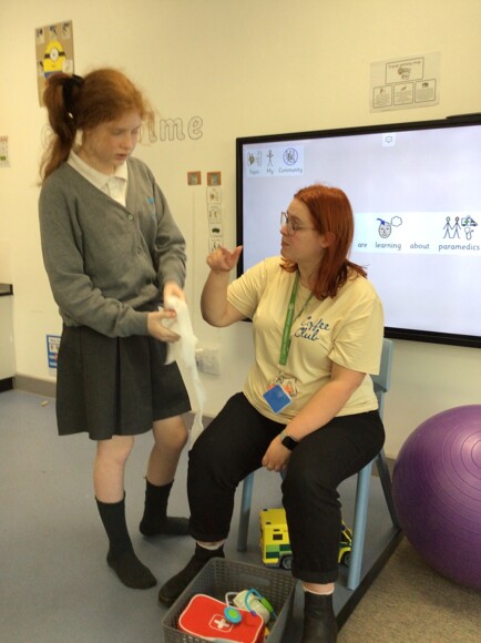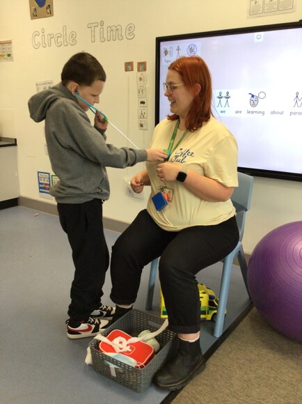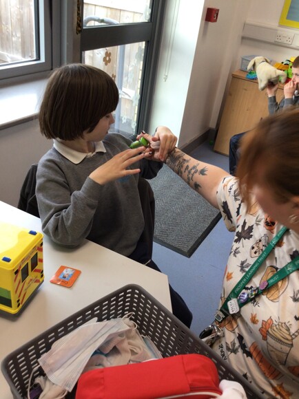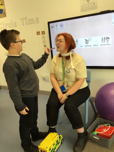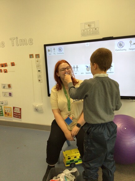 To end their topic, Yellow Class learnt about the people who help them in the community, including firefighters and paramedics. The pupils had so much fun helping a very poorly Amber by driving the ambulance to her, before using the medical kit to make her feel better.