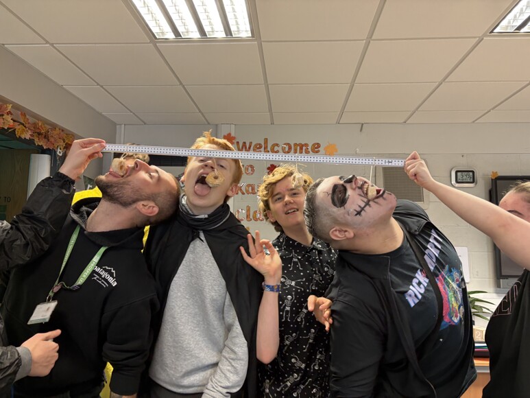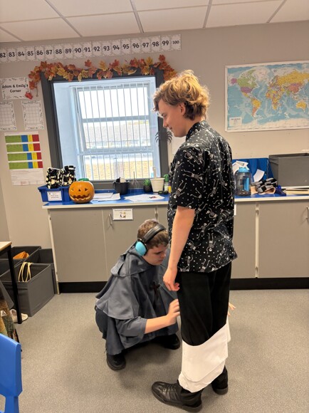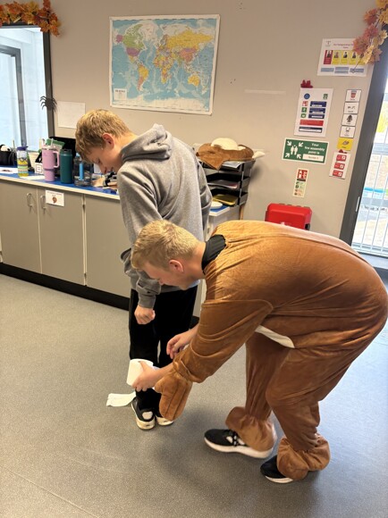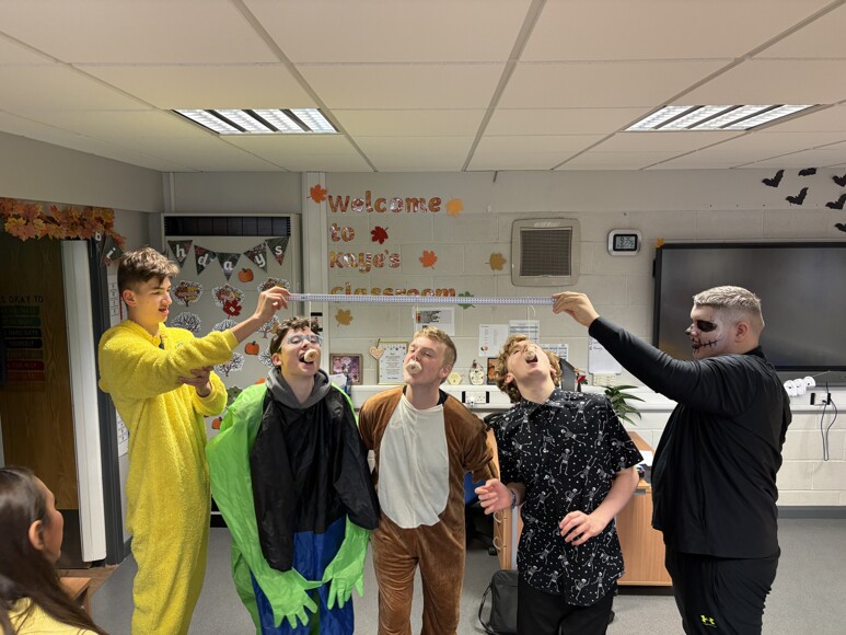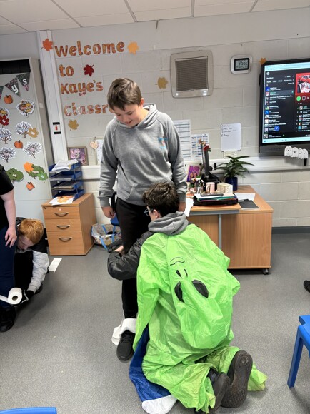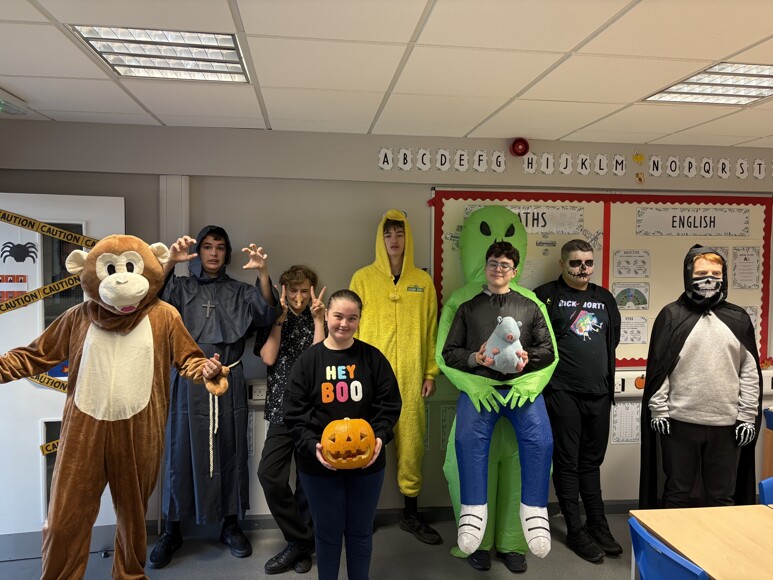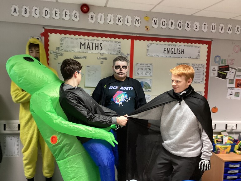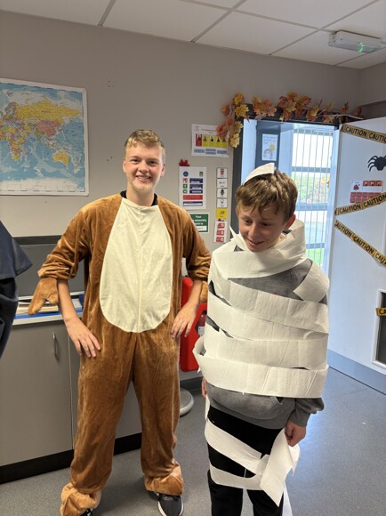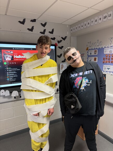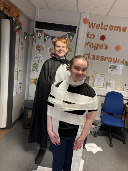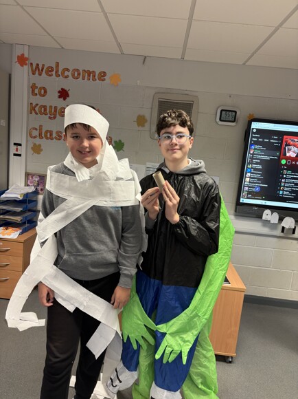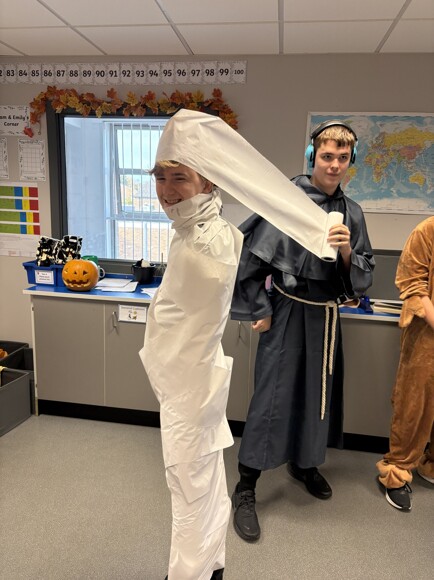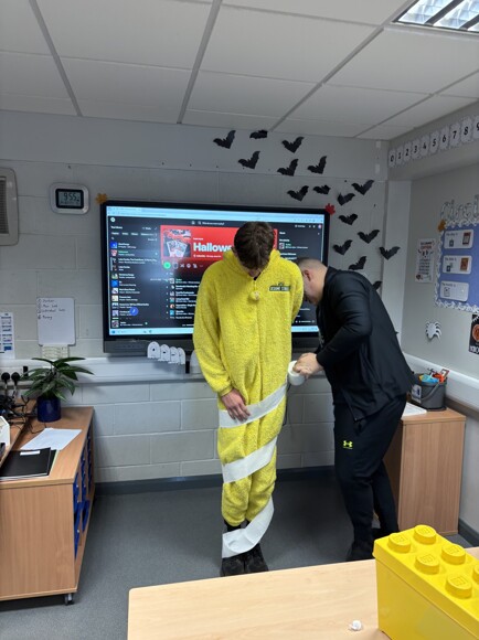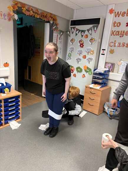The pupils then had a mummy race to see who could wrap up their friend in toilet roll the quickest. They then played Halloween quizzes on Kahoot. To end the day, everyone had a school Halloween party.