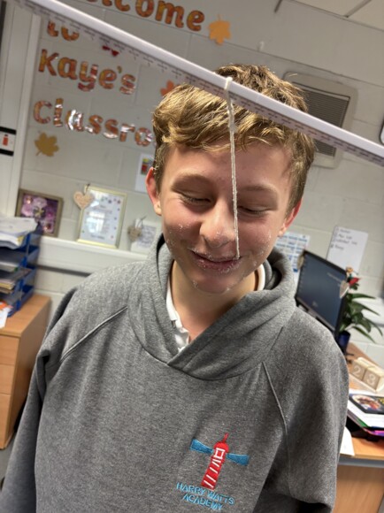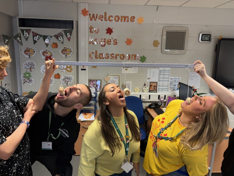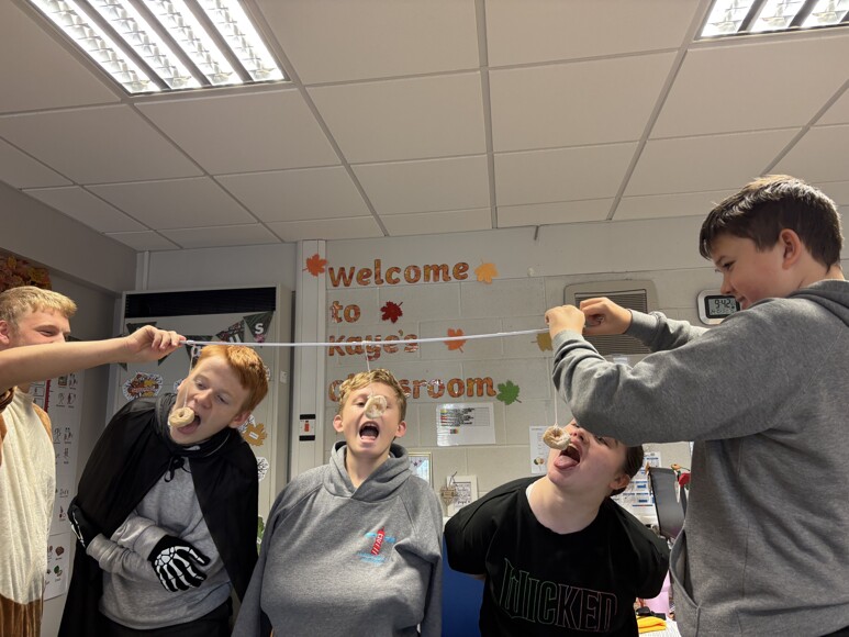 Everyone has had the best first half term in Maple Class, so they spent Friday morning playing Halloween games. First, they had their hands behind their backs and tried to catch the doughnuts in their mouths. Whoever finished first would be the winner.