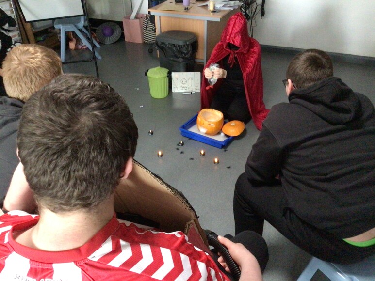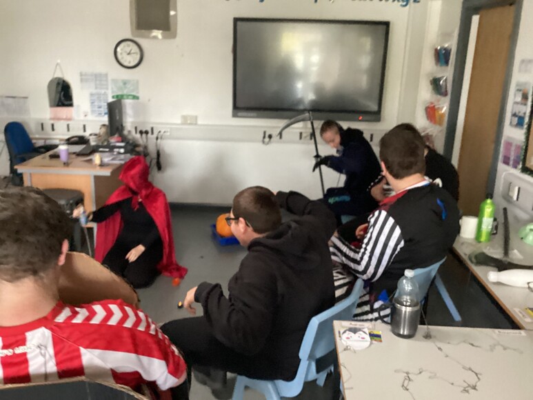 They took part in a Halloween-themed Attention Autism session, where pupils held their attention with great anticipation of what was in the bin. Everyone enjoyed watching the pumpkin fizz and was very surprised when the silly string appeared during stage three. For stage four, the pupils went to their Halloween party in the hall with the rest of the Discover pathway.
