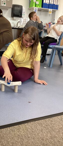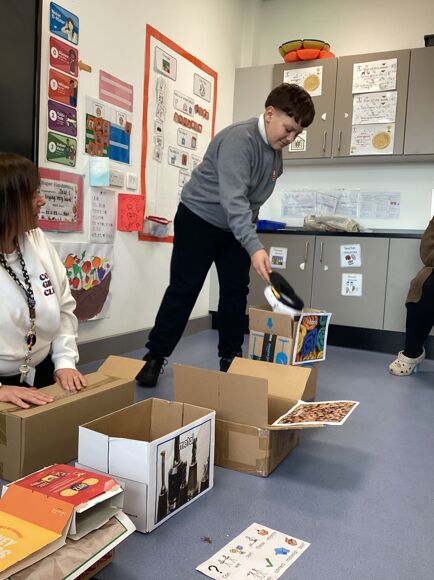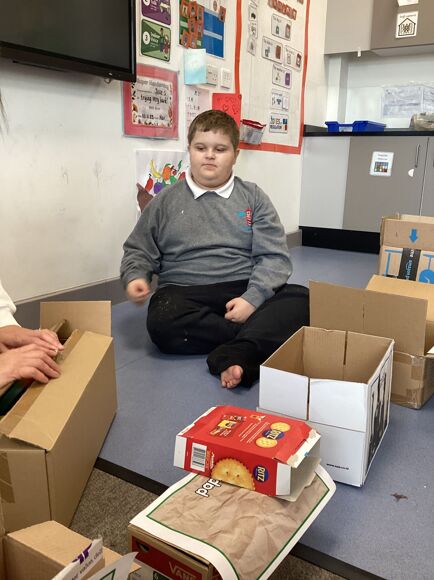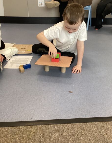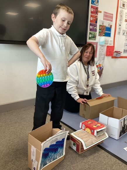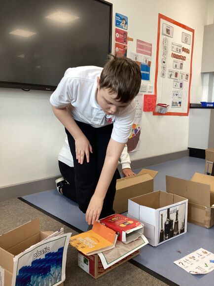 After the sorting, they then enjoyed doing an experiment to see what the strongest material is, and came to the conclusion that cardboard was the strongest from the resources that they had.