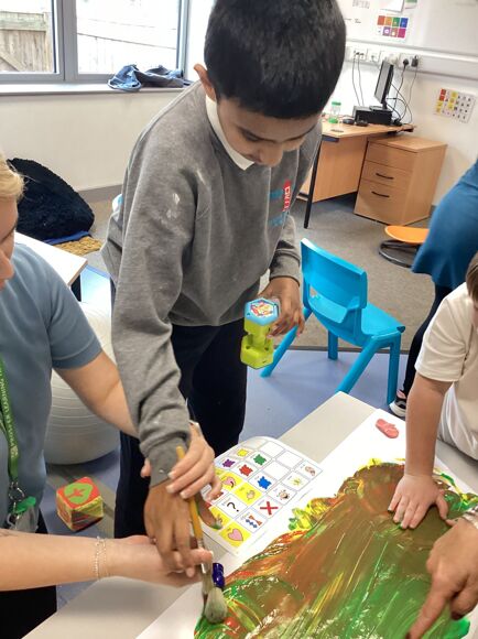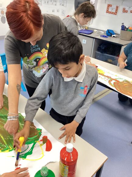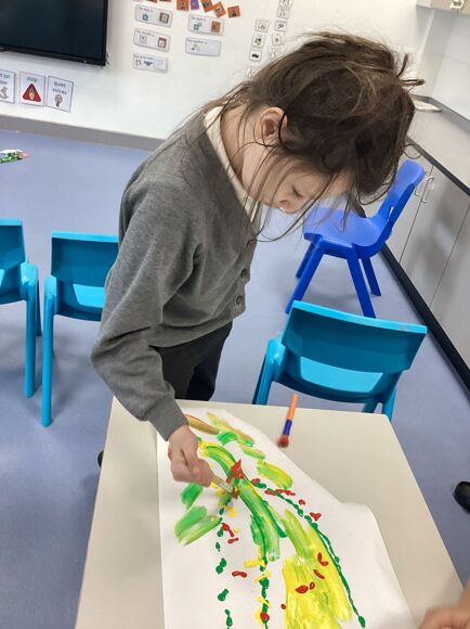 On Thursday morning, Green Class started exploring colour in Maths. The pupils loved investigating different coloured paint on paper.