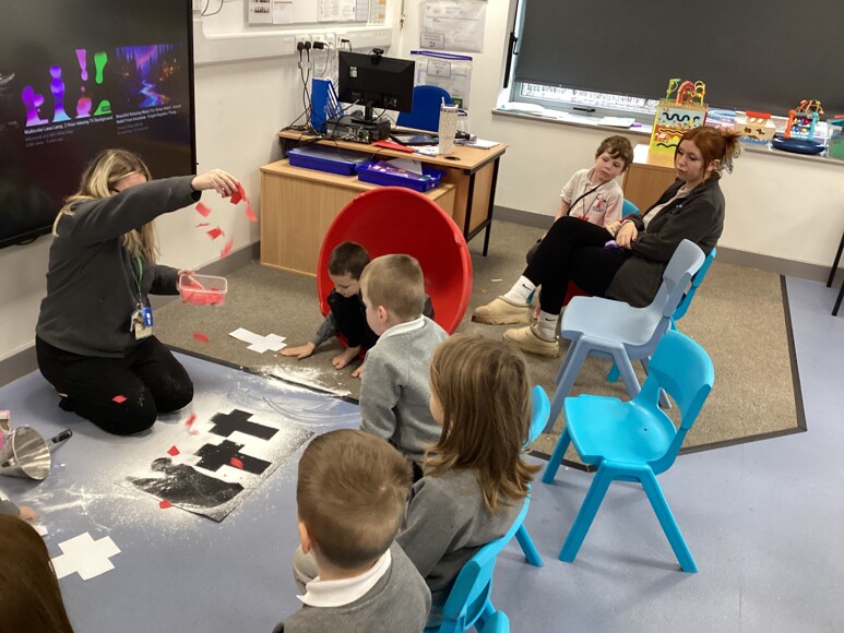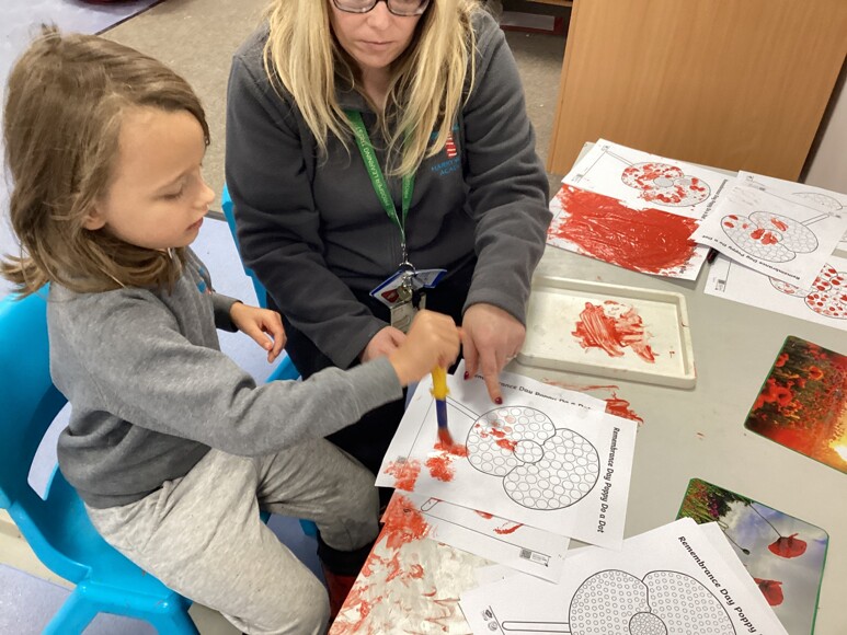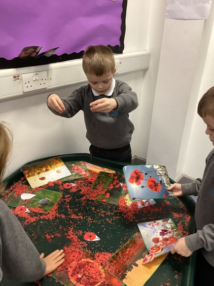 This week in Purple Class, the pupils learnt about Remembrance Day. The pupils first watched a video about Remembrance Day and then watched some icing sugar being poured onto some black paper to make an outline of a soldier and a cross.