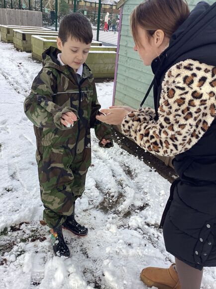 Green Class had so much fun exploring the snow on Thursday. The pupils all enjoyed drawing different shapes for their Maths lessons, building snowmen, and throwing snowballs.