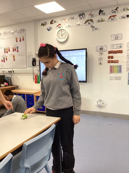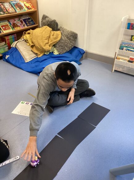The pupils then measured using the one metre ruler to see the different lengths that the car travels. Panther Class had so much fun making their predictions, before completing the experiment to see which surface made the car go the furthest.