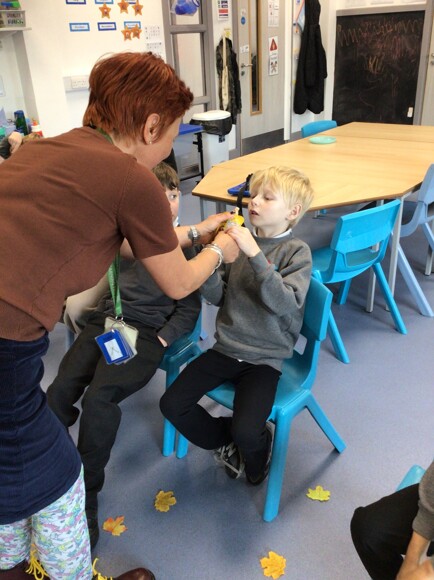 Over the Autumn term, Blue Class has been reading 'Leaf Man'. The pupils had so much fun listening to Helen read the story and were able to recall different parts and what happened next.