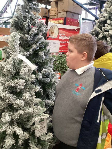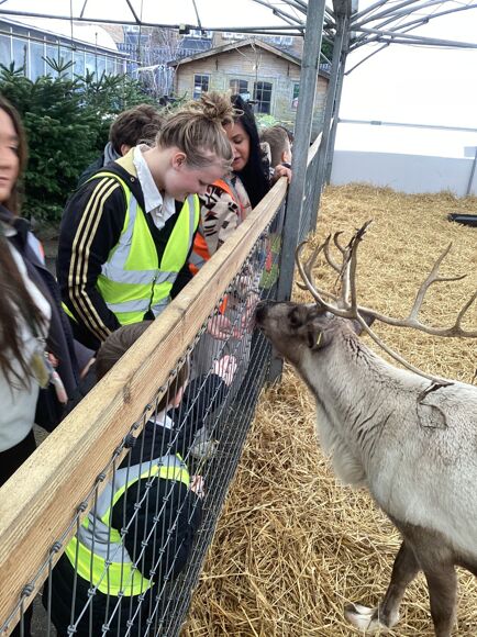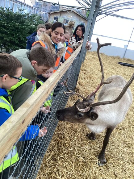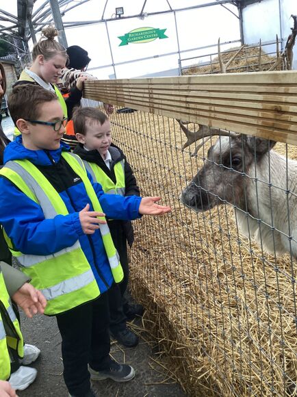 On Tuesday morning, for their Christmas trip, Tiger Class visited the reindeer at Richardson Garden Centre. The pupils bought reindeer food to feed the reindeers, and then they walked around the garden centre to look at the beautiful Christmas trees and decorations.