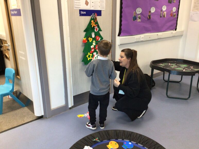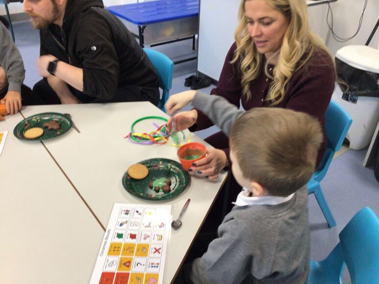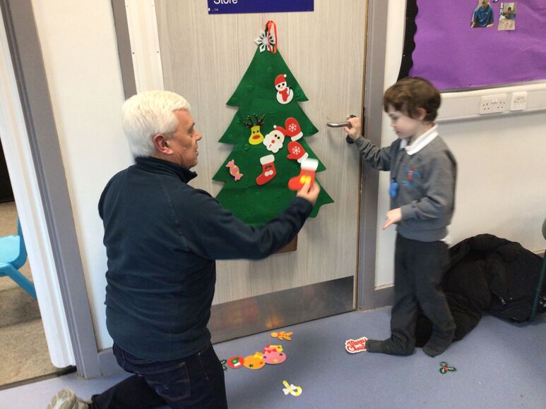 Purple Class enjoyed a Christmas stay and play, where they had a lovely festive tuff tray and Christmas activities. They made biscuits and sang Christmas songs with their parents.