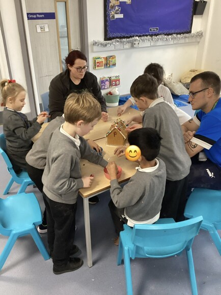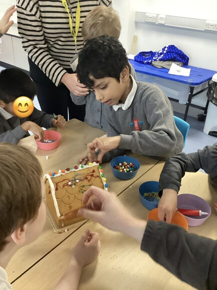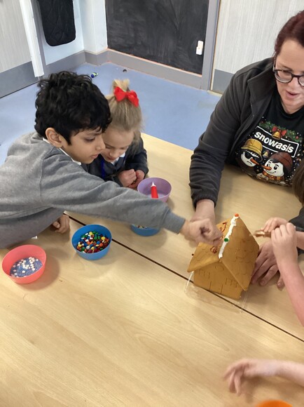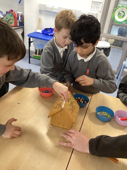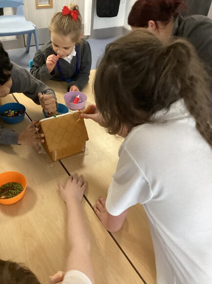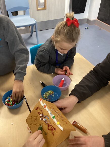 During their Topic lesson, Blue Class pupils all joined in with decorating a gingerbread house. They used icing pens, smarties, and sprinkles to stick onto the house, and made it look so fun and festive.