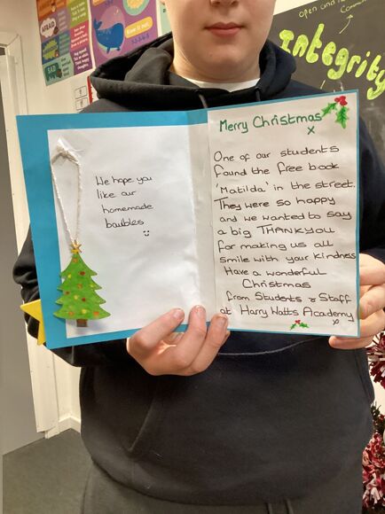 The book they found was 'Matilda' by Roald Dahl and was greatly appreciated. Thank you to the staff and residents of St George's care home for bringing joy and smiles to the pupils this Christmas.