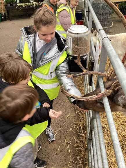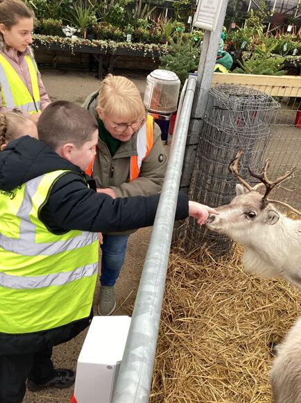 This week, Jaguar Class had a visit to a garden centre to see the reindeer. All of the pupils were very excited, and everyone was very brave and all had a turn feeding them by hand.