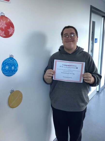 The first are of 'Give' has been a huge hit and the Wellbeing Warriors are extremely proud of everyone who has took part so far! In the Discover special Christmas assembly, one student was given the overall Wellbeing Warriors award for this half term due to his kind and generous gestures that he had shown to other students and staff. Well done Joey you are a real credit to Harry Watts Academy in the Discover pathway, and everyone is proud of your hard work.