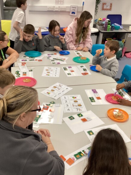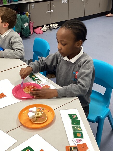 In their Communication lesson, Pink Class pupils made some yummy pancakes. Firstly, they made a sentence to choose what they would like on top of the pancakes. Then, they made them and used descriptive words to tell each other how they tasted.