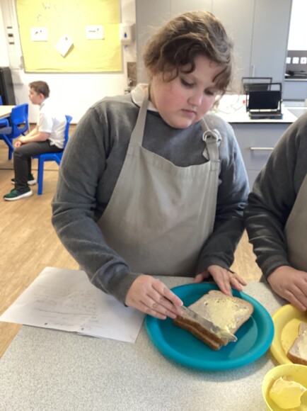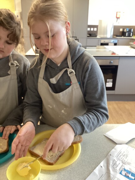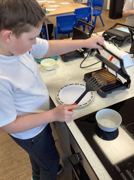 Last week, Oak Class pupils made their own tasty toasties, following on from the previous week, where they had planned what equipment and ingredients they needed. They ensured that they had washed their hands and placed their aprons on. Next, it was time to collect all of their ingredients from the group table. These included bread, cheese, ham, and butter.