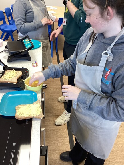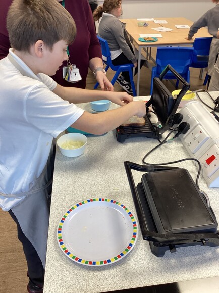 Everyone used great communication skills to calculate exactly how much they needed. Once this was complete, they began to assemble their toasties, ensuring that they used their independence and good listening skills.