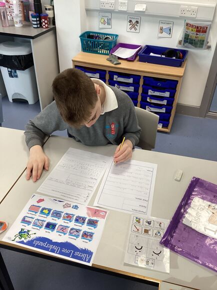 This half term, as part of their English lessons, Tiger Class has been reading 'Aliens Love Underpants'. The pupils explored the story's sensory props and worked with their friends to sequence the story.