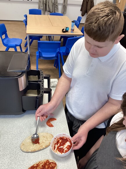They then put their plans into action and headed into the cookery room. Everyone was so sensible and followed their instructions independently. The pizzas tasted as delicious as they looked.