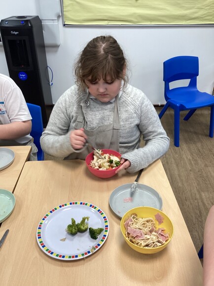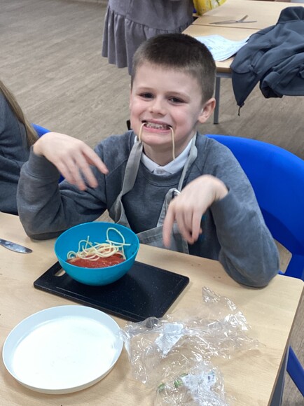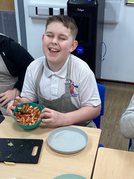 On Tuesday, Oak Class pupils made their own delicious pasta dish. The class planned their pasta dishes the week before, ensuring that they added the instructions and equipment needed for this week's cooking session.
