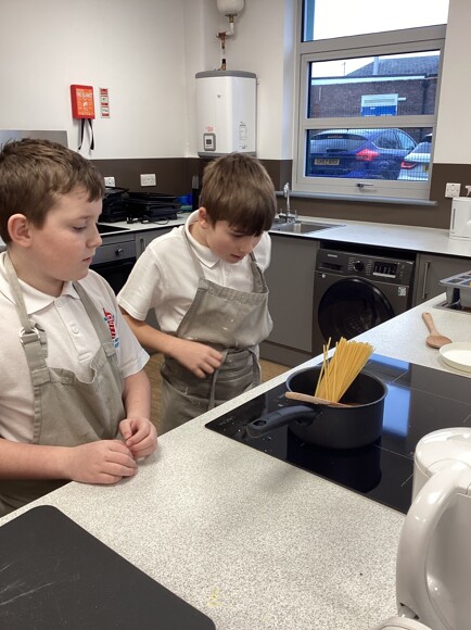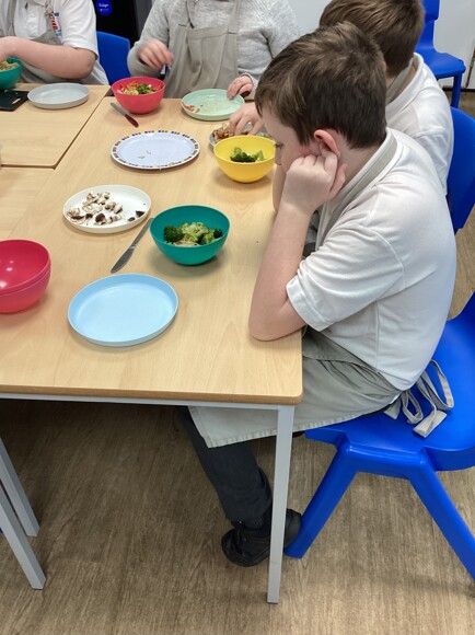 Each pupil ensured that they completed a safety check of the cookery room and ensured they had washed their hands. Once this was completed, they boiled their pasta and then added the sauce. They even added some delicious ingredients like pepperoni, chicken, and broccoli.