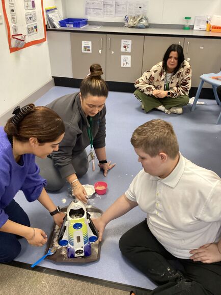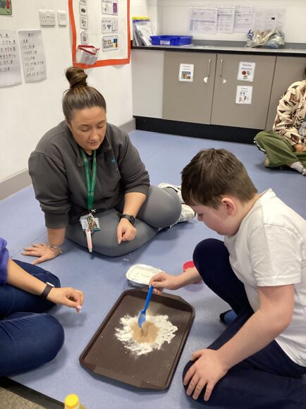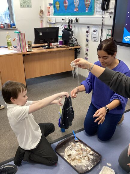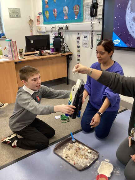 This term, during Science, Tiger Class has been learning all about space. The pupils engaged in a sensory experiment to make moon sand and took turns to launch their space rocket.