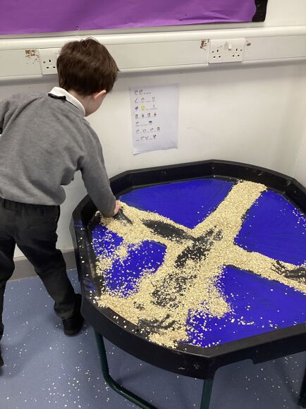 In Purple Class, the pupils learnt about Burns Night. They enjoyed a Scottish-themed Bucket Time, along with a sensory tuff tray, exploring oats and Haggis while listening to Scottish music.
