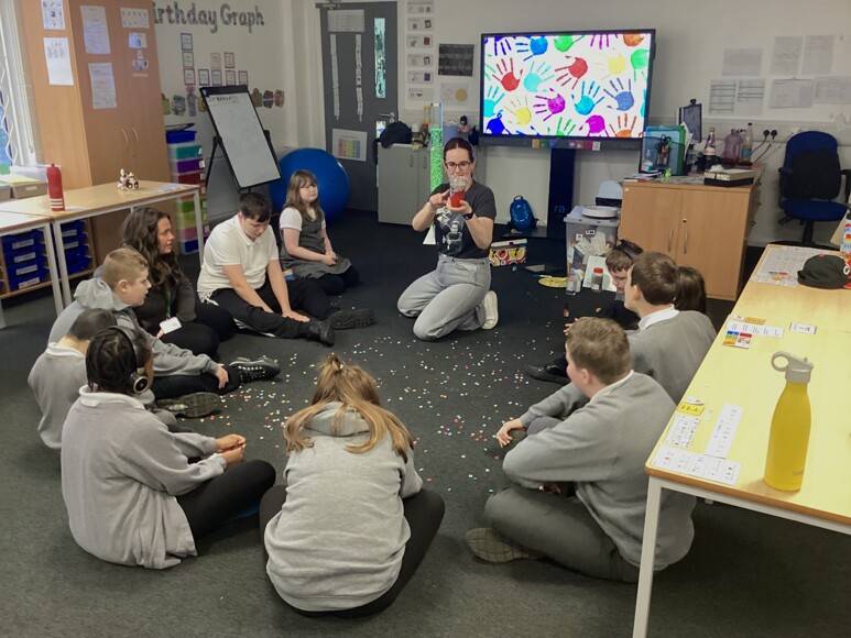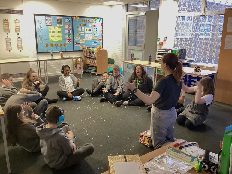 They kicked off with a sensory light, upbeat music, and confetti balloons. The children were mesmerised by the colours and movement, helping everyone tune in and focus.
