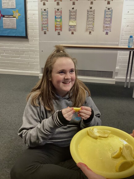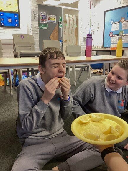 Ash Class then explored some of our 5 senses. They used bubbles for sight, water for touch, tinsel for touch and lemons for taste. There were lots of giggles, curious faces, and brave taste‑testers.