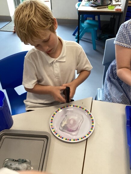 Orange class where challenged with the important job of becoming scientists and saving the sea animals! They first made predictions to which materials will help melt the ice that was trapping the sea animals then they got hard at work. Everyone worked as a team to help free all animals safely using warm water, chiselling and salt. All animals were saved and everyone had a great time!